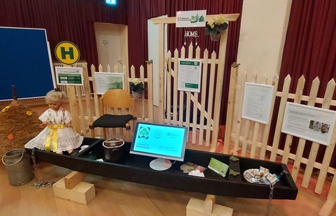 Im Spremberger „Bergschlösschen“ haben die Kommunen ihre Projekte, Maßnahmen und sich selbst vorgestellt. Für des Amt Burg (Spreewald) waren die Vertreterinnen der Projektträger Diakonisches Werk Niederlausitz gGmbH und SOS-Kinderdorf e.V., sowie die zuständige Sachbearbeiterin anwesend. Mit dem spreewaldtypischen Ensemble, als Ersatz für einen klassischen Messestand, sollten einerseits die Region präsentiert und zum anderen die weitverstreuten Orte und Grundstücke im Amtsgebiet symbolisiert werden. Ein großer Dank gilt den Erbauern des Zaunes und des Kahns, sowie Frau Lange aus Heinersbrück für die Spreewaldpuppe und den Heuschober.