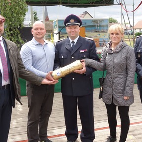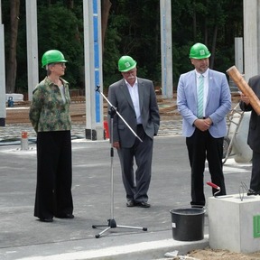„Es ist mit Abstand die größte Investition, die die Gemeinde Burg (Spreewald)/Bórkowy (Błota) je in Angriff genommen hat“, sagte Bürgermeister Hans-Jürgen Dreger anlässlich der Grundsteinlegung für das Kultur- und Sportzentrum. Ministerin Kathrin Schneider übergab aus diesem Anlass den Fördermittelbescheid über 17.270.616, 95 Euro aus dem Strukturstärkungsgesetz.